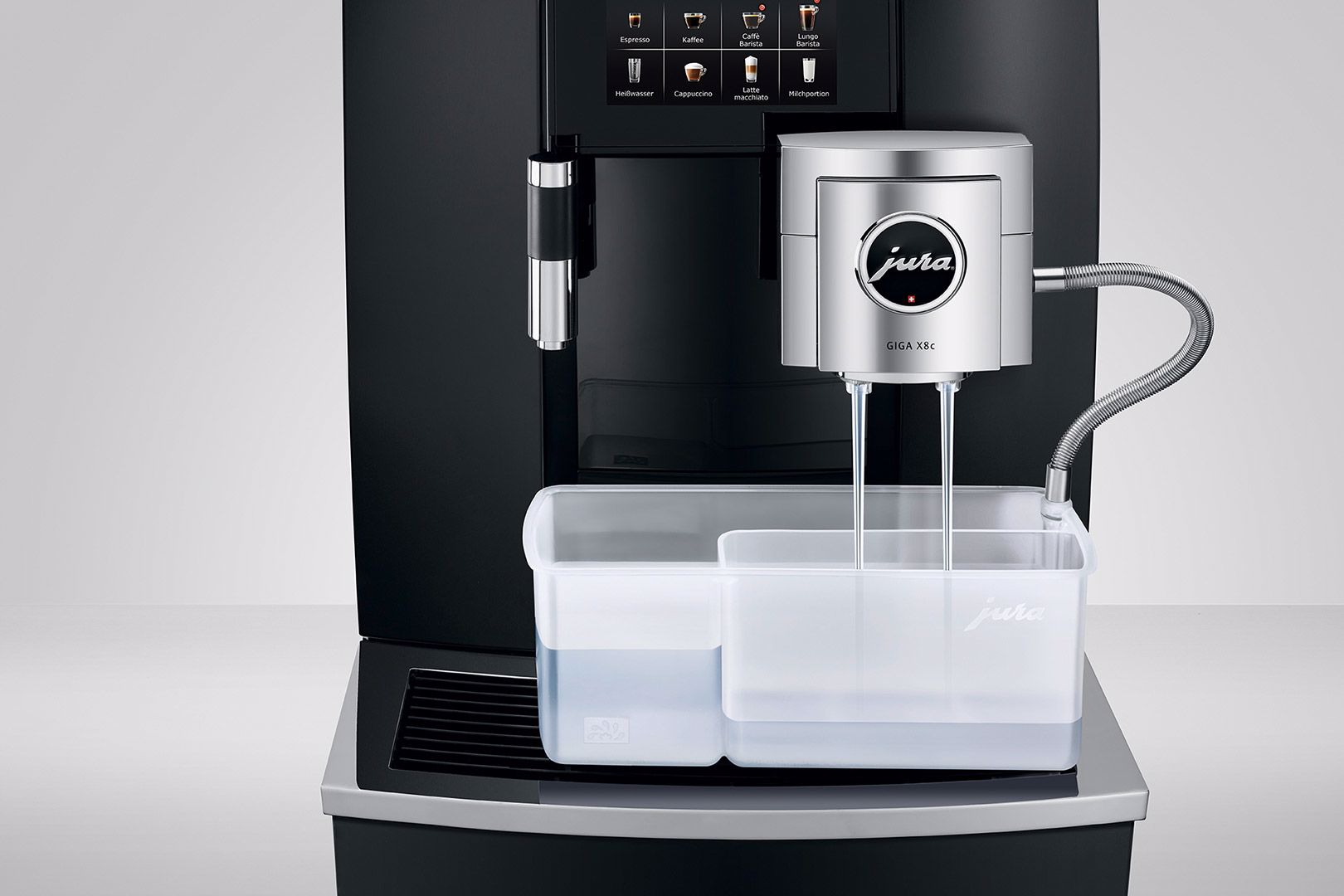 Skleněná nádoba na mléko je nepostradatelným doplňkem pro všechny milovníky kávy, kteří svou rodinu a hosty čas od času rádi rozmazlují módními nápoji jako je flat white, latte macchiato nebo cappuccino. Perfektně sladěná s typickými liniemi designu značky JURA, jednoduchá na skladování v lednici a připravená na připojení ke kávovaru dle potřeby. Trubička na nasávání mléka je připojena ve správné výšce, a proto se mléko s lehkostí nasaje a napění. Nádoba má objem 0,5 litru a je vhodná pro mytí v myčce na nádobí.