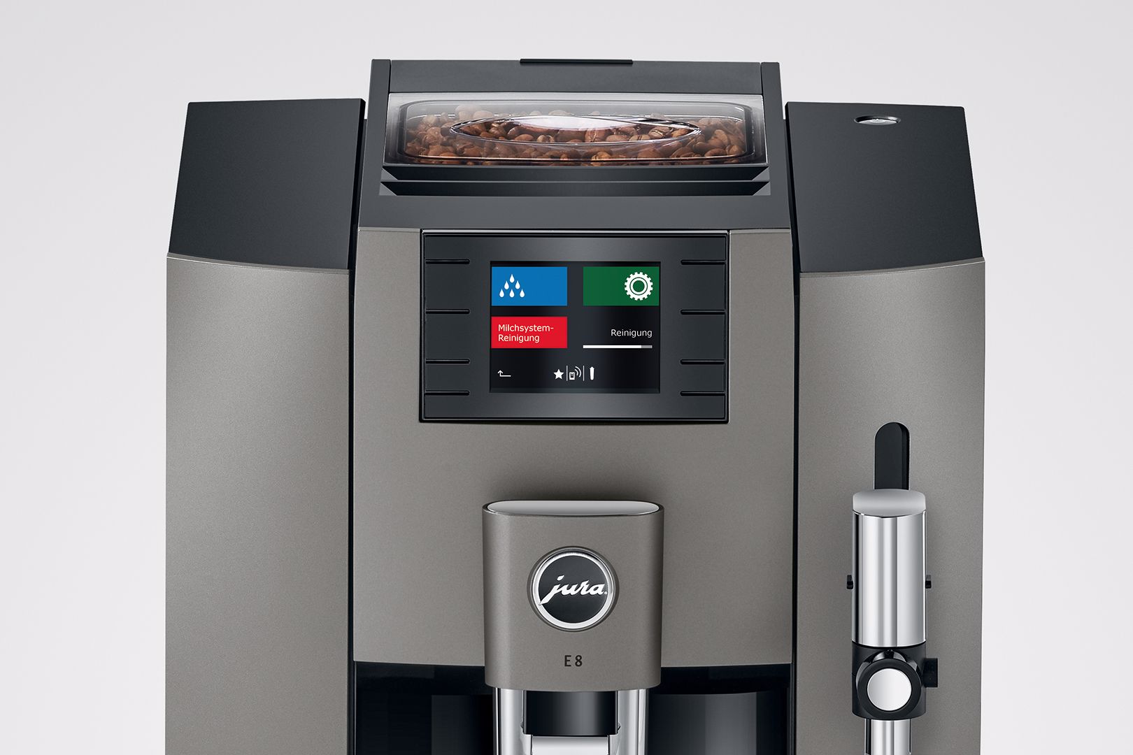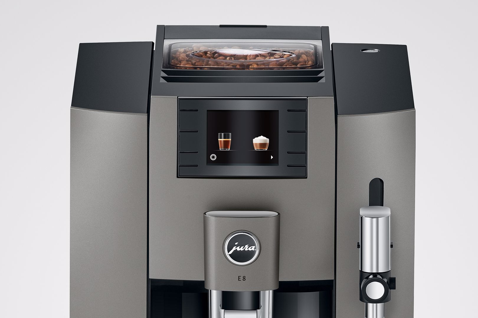 Charakteristický design automatických kávovarů JURA je jasný a výrazný. Vysoce kvalitní materiály a precizní zpracování podtrhují prémiovou kvalitu moderního kávovaru E8. Už jeho tvar je symbolem kvality, funkčnosti a dlouhé životnosti. Detaily jako nádrž na vodu s rýhami nebo vysoce kvalitní, chromovaný podstavec pro šálky dokreslují čistý a harmonický design modelu E8.