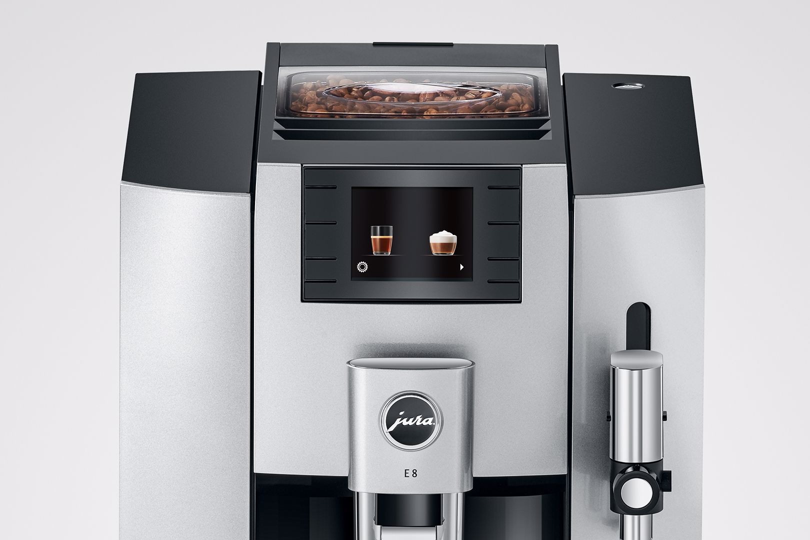 Charakteristický design automatických kávovarů JURA je jasný a výrazný. Vysoce kvalitní materiály a precizní zpracování podtrhují prémiovou kvalitu moderního kávovaru E8. Už jeho tvar je symbolem kvality, funkčnosti a dlouhé životnosti. Detaily jako nádrž na vodu s rýhami nebo vysoce kvalitní, chromovaný podstavec pro šálky dokreslují čistý a harmonický design modelu E8.