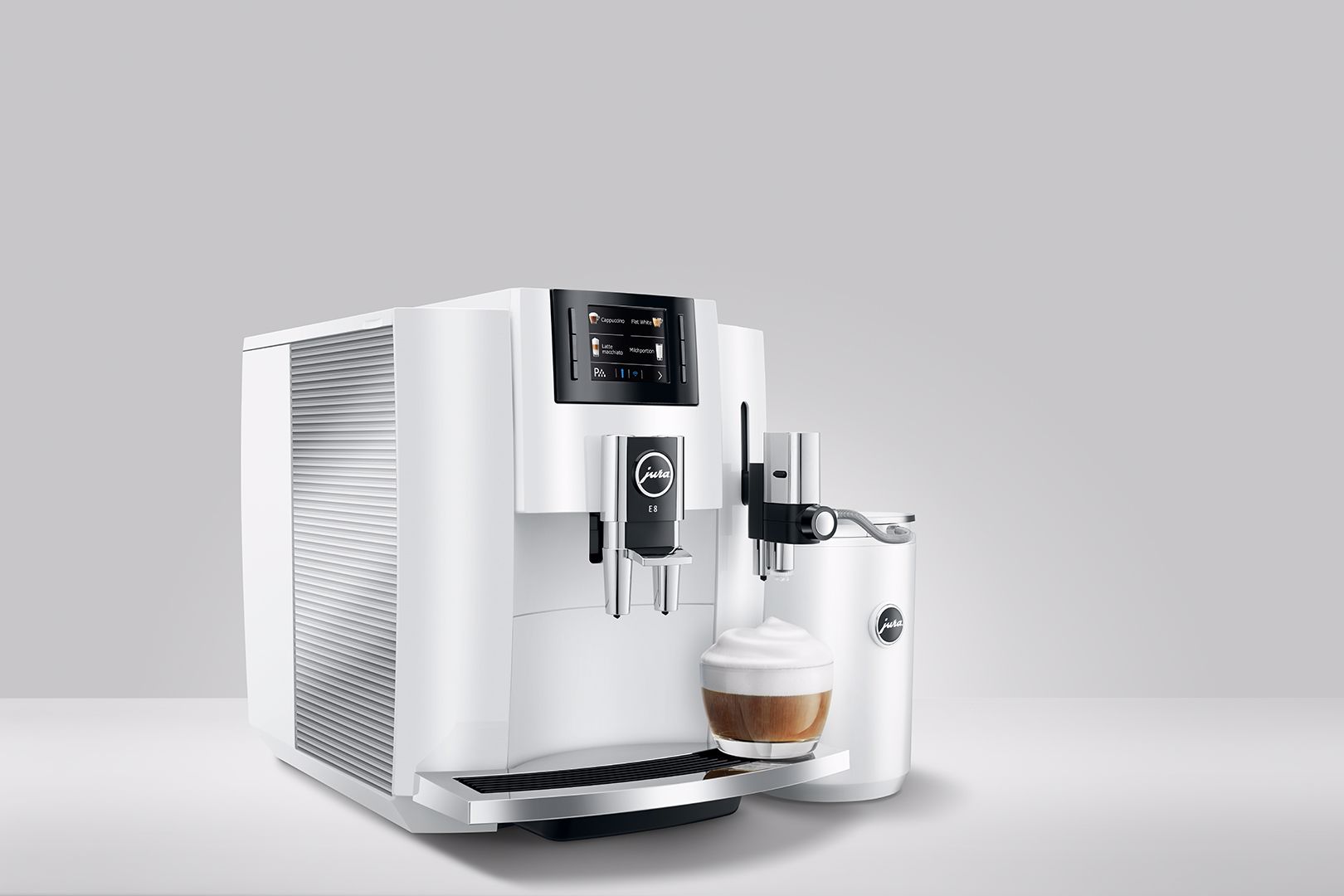 Ať se jedná o funkci One-Touch Cappuccino s jedním dotykem pro oblíbené speciality, jako je latte macchiato, flat white a cappuccino, nebo o proces pulzní extrakce (P.E.P.®), který optimalizuje dobu extrakce a zaručuje nejvyšší úroveň aroma pro krátké speciality z kávy - vykouzlí nový model E8 - s nejmodernějšími technologiemi z dílny JURA - působivou škálu specialit jediným stisknutím tlačítka.