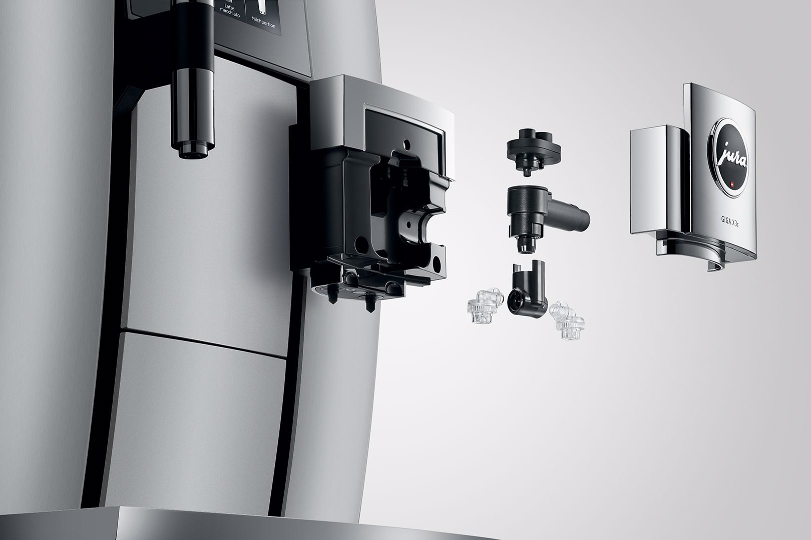 Stejně snadno, logicky a intuitivně jako ovládání probíhá i údržba kávovaru GIGA X3c. Originální čisticí prostředky značky JURA i integrované programy proplachování a čištění zaručují hygienu s certifikací TÜV, a to jediným stisknutím tlačítka. Stejně promyšlené je čištění systému pro dávkování mléka. Spouští se plně automaticky a jediným dotykem displeje a zaručuje dokonalou čistotu při manipulaci s mlékem. Několika jednoduchými pohyby je možné rozložit masivní kombinovanou trysku. Vývody pro mléko jsou umístěny vpředu a jsou snadno přístupné, takže je lze v případě potřeby snadno vyměnit.