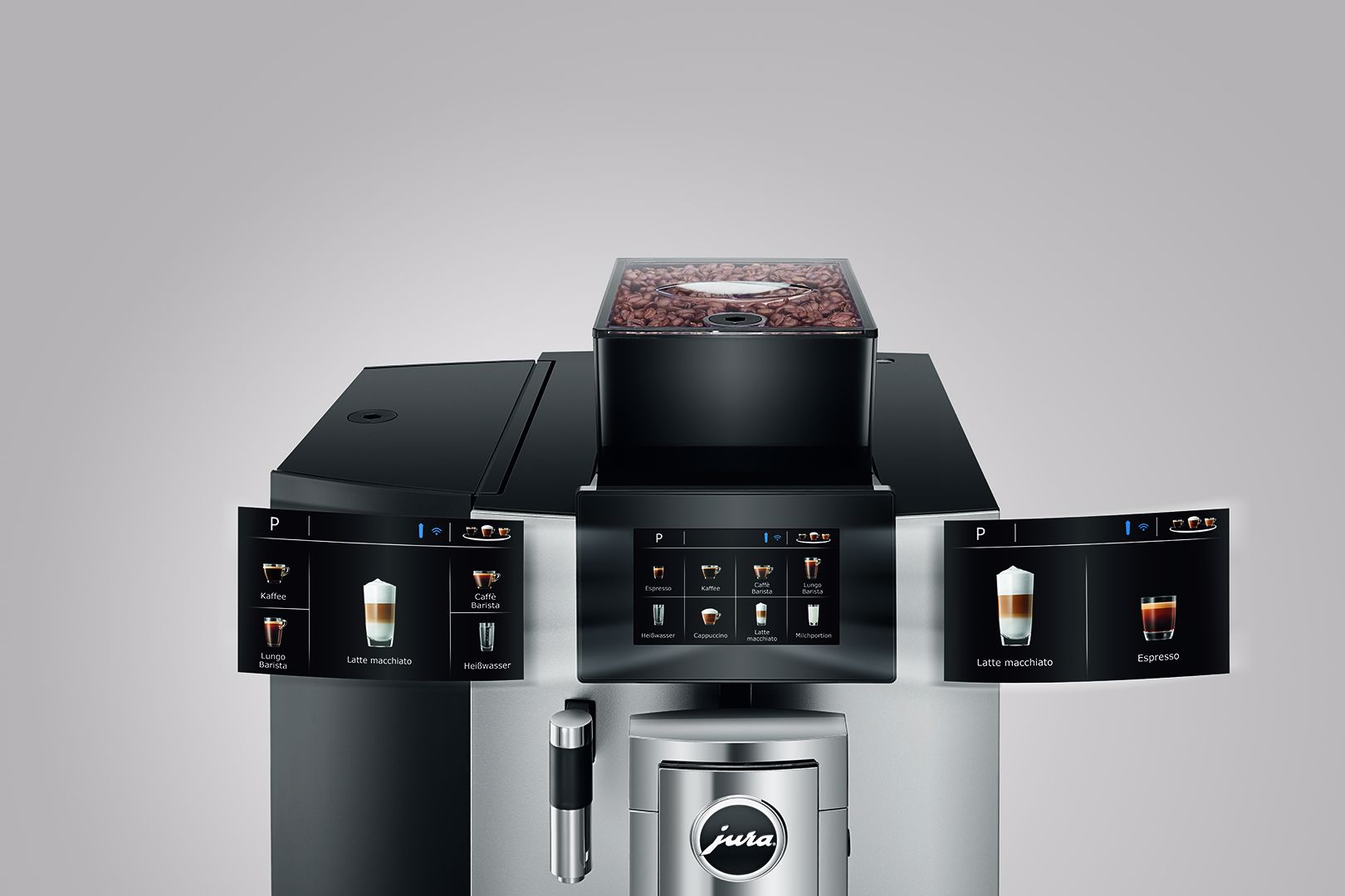 O vždy perfektní výsledek mletí a zvýšení aroma o 12,2 %* se postará špičková inovace: Professional Aroma Grinder. Díky funkci One-Touch-Lungo dokáže překvapit dokonce i přípravou caffè barista a lungo barista. Navíc poskytuje různé stupně teploty horké vody, což ocení zejména milovníci čaje. Důkladně provedená, výškově stavitelná kombinovaná tryska naplní po stisknutí tlačítka šálky nebo sklenice podle volby jednou či dvěma kávovými specialitami současně. Ovládání prostřednictvím barevného dotykového displeje velikosti 4,3" s vysokým rozlišením je navrženo jako zcela intuitivní.