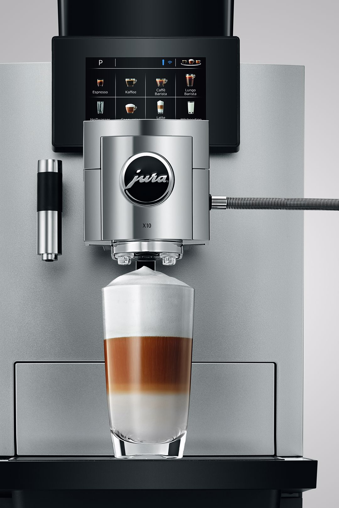 Kávovar X10 přesvědčí všestranností, snadným ovládáním a individualitou. Zvládá 31 různých specialit, čímž pokrývá celé spektrum kávových nápojů zjemněných mlékem i mléčnou pěnou a rovněž celou šíři černých kávových specialit.