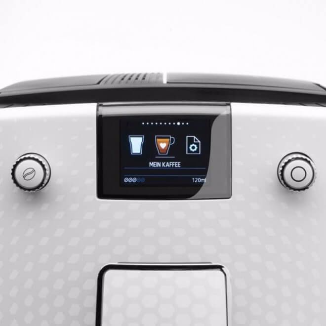 Kávovar se snadno ovládá, komunikace probíhá pomocí textu a symbolů na barevném LCD displeji. Samozřejmostí je i elektronický návod v přístroji. Díky detailnímu nastavení si můžete si zvolit množství vyrobené kávy 20 -240 ml, lze nastavit i jedinečnou sílu aroma každého šálku 7 -11 g. Dále kávovar umožňuje nastavení hrubosti mletí ve třech krocích a díky výkonnému čerpadlu je schopen vyvinout tlak 15 bar, nutný pro správné propaření kávy, i výrobu dvou šálků současně. Nastavit můžete i výšku výpusti, až do výše 140 mm. Použitá káva je shromažďována do samostatného zásobníku odpadu. Celková obsluha modelu je velmi snadná a intuitivní, stejně jako jeho čištění. Většinu částí lze snadno demontovat, pro ještě snadnější údržbu.