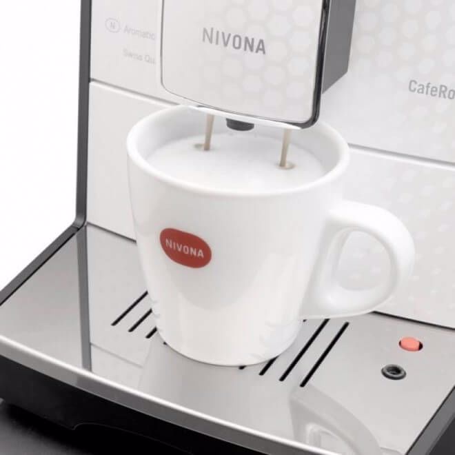 Kávovar NIVONA 778 je určen pro milovníky klasického espressa i mléčných nápojů, které díky funkci one touch, připraví snadno, jedním stiskem. Výroba mléčných nápojů, jako cappuccino nebo latte je zajištěna pomocí samonasávací napěňovací trysky, která dokáže vyrobit nejen páru, ale i horkou vodu. Tryska je umístěna přímo v hlavě s tryskami na kávu, takže již nemusíte přesunovat sklenici či šálek. Stačí pouze ponořit nasávací hadičku do mléka a vybrat nápoj.