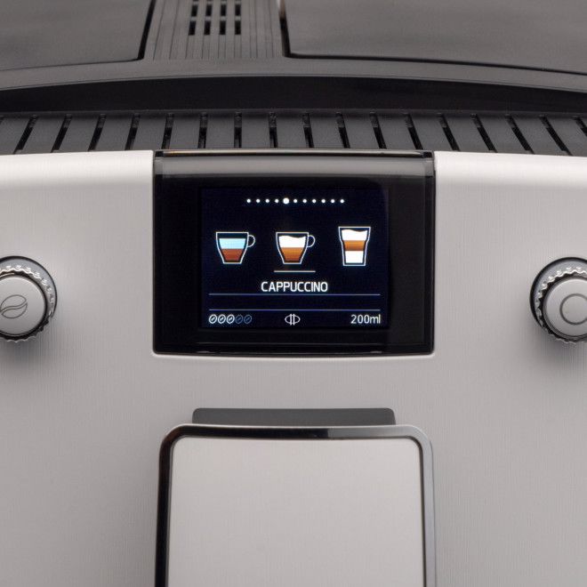 Automatický kávovar v moderním designu v elegantní černé barvě s bílým předním panelem bude obdivovat každá vaše návštěva. Kávová zrnka čerstvě namele ještě tišší kónický mlýnek, než který byl použit ve starších modelech kávovaru. Mlýnek je vyrobený z kvalitní kalené oceli. Stupeň mletí si můžete individuálně nastavit podle vlastních preferencí.