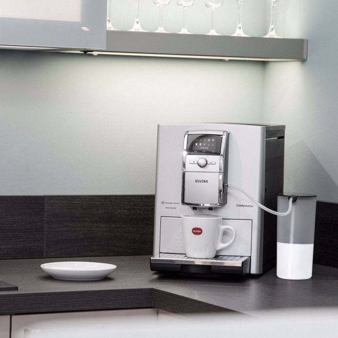 Další předností tohoto a vyšších modelů značky NIVONA je automatické čištění nasávací hadičky horkou parou. Funkce, která výrazně usnadňuje údržbu. Není třeba hadičku sundávat a proplachovat. S použitím samostatné násypky pro mletou kávu můžete připravit jeden šálek z různých druhů kávy.
